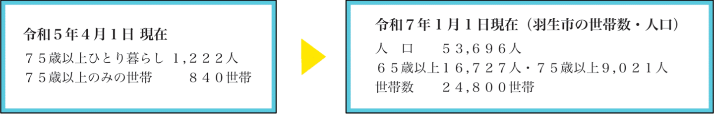 羽生市65歳以上 16,459人 (東町 約1,250人) 高齢化率30.5%