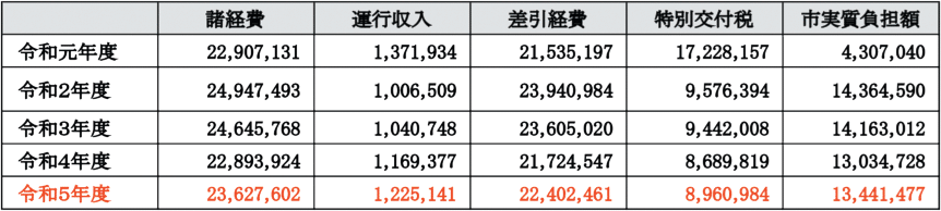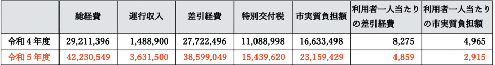 | 経費 | 1先1回1309円・特別交付金利用 | 車両で年間110万円・特交なし |